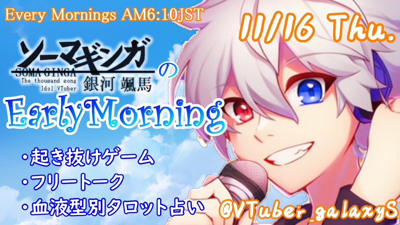 【#アサカツ】11/16起き抜けにゲームと占いと雑談✨銀河颯馬のEarlyMorning【毎朝6時10分から#地下アイドルの #朝活配信/Vtuber/銀河颯馬/ファッションドリーマー】