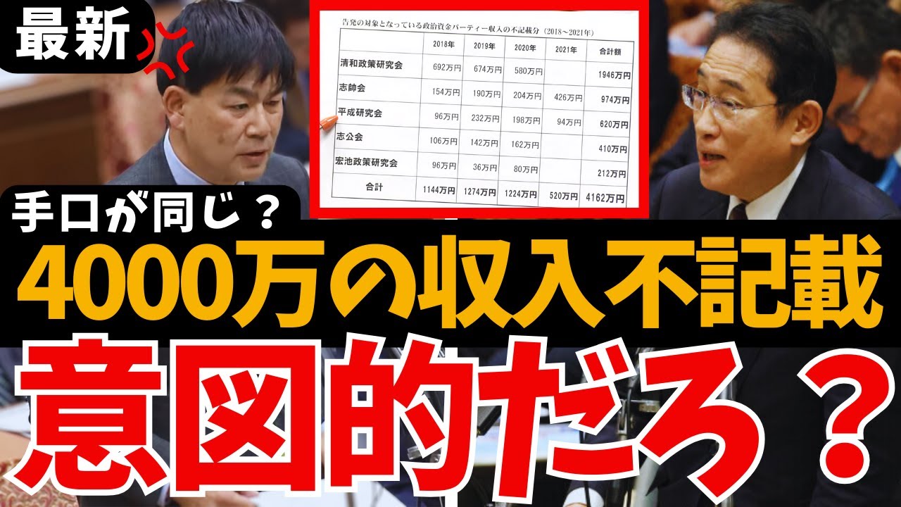 【告発で特捜部が動く】岸田総理ら4千万のパーティー券収入が不記載 自民党5派閥がピンチ!意図的だろ?手口を閣僚で共有か?何かおかしい 国会中継 最新 増税メガネ 宏池会 立憲 政治資金規正法違反疑い