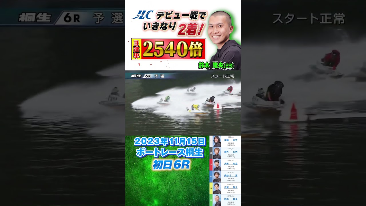 #高配当 #デビュー戦 #鈴木唯央 #133期 #鈴木唯由 #高オッズ #3連単 #ルーキー #新人 #ボートレース桐生 #ボートレース #ボートレーサー #ボート #レース #JLC #レジャーチャンネル #レジャチャン