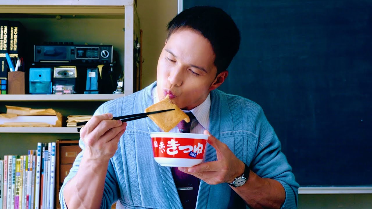 市原隼人、赤いきつねを誰もいない教室で楽しむ/ドラマ『おいしい給食』×「赤いきつね緑のたぬき」コラボCM