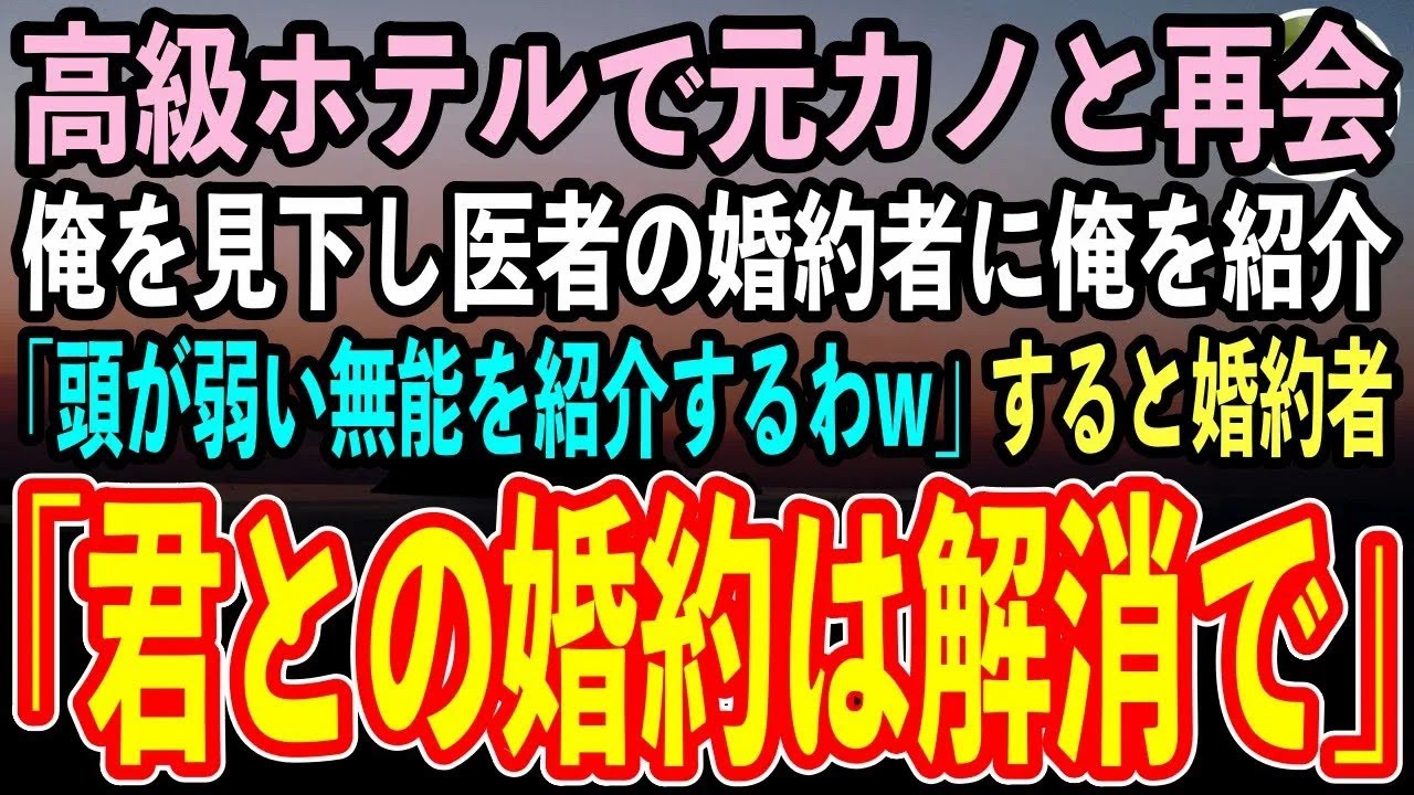 【感動する話】医学部受験を辞退した理由を知らずに俺を振った元カノと高級ホテルで再会。医者の婚約者に俺を紹介する元カノ「頭が弱い無能を紹介するわw」→直後、婚約者「君との婚約は解消で」【スカッと朗読】