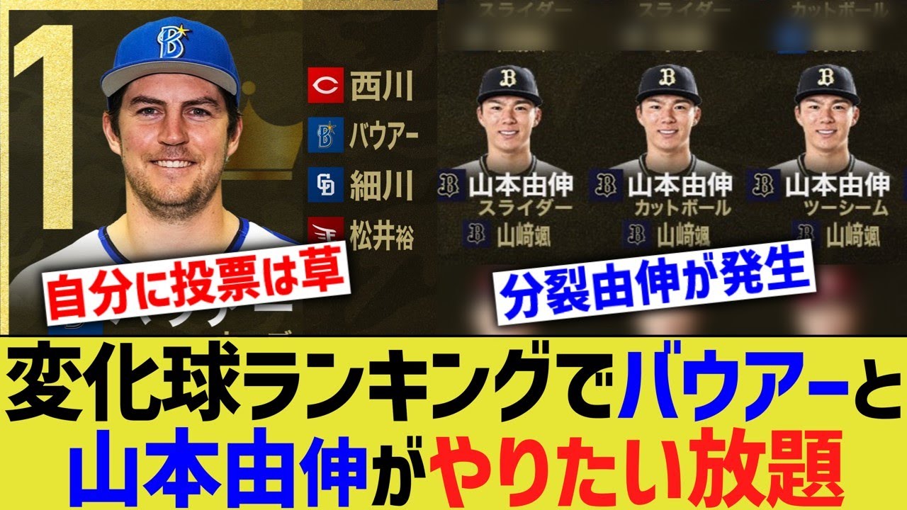 プロ野球変化球ランキング、バウアーと山本由伸がやりたい放題に【なんJ プロ野球反応】