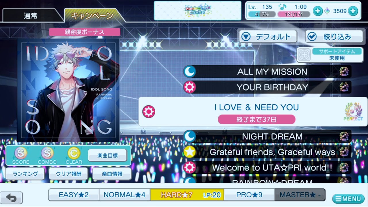 「I LOVE & NEED YOU」 楽曲レベル:7 ノーツ数:342