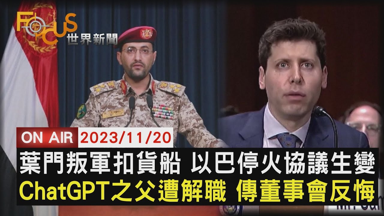 葉門叛軍扣貨船 以巴停火協議生變 ChatGPT之父遭解職 傳董事會反悔【1120FOCUS世界新聞LIVE】