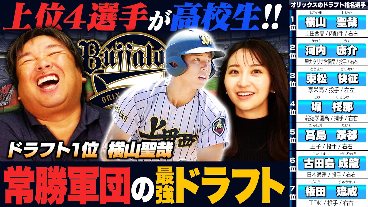 【ドラフト評価11】『これが3連覇の余裕ドラフト‼︎』1位で上田西の横山選手を単独指名‼︎前田悠伍投手はウェーバー順で諦めた可能性も⁉︎”上位4選手が高校生”里崎の評価とは⁉︎【オリックス編】