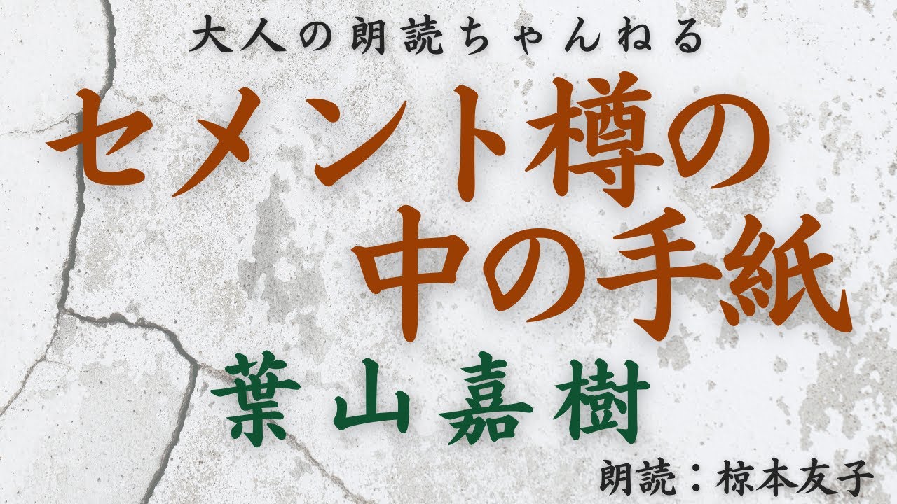 元放送局アナウンサー、落語と漫才、ミュージカルの舞台にも立つ椋本友子(むくもとゆうこ)の大人の朗読ちゃんねる。今回は、葉山嘉樹「セメント樽の中の手紙」を朗読しています。