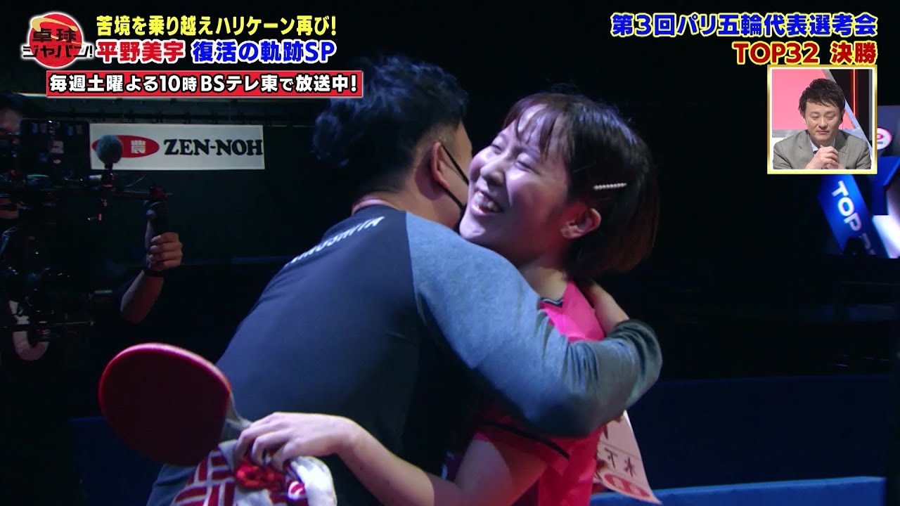 【BSテレ東 1月21日(土) 夜10時放送】昨年11月に行われた第4回TOP32で、伊藤美誠、早田ひなを破り復活Vを遂げた平野美宇!パリ五輪へ、所属する木下グループ・倉嶋洋介総監督を迎え復活の裏側をDEEP解説!