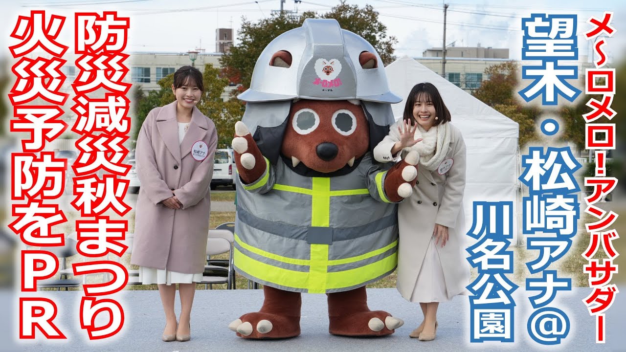 メ~テレ(名古屋テレビ放送)の熱い地元愛を皆さんに伝える「メ~ロメロ!アンバサダー」を務める、望木聡子アナ・尾形杏奈アナ・松崎杏香アナが「名古屋市消防局 広報アンバサダー」に就任!今回の動画は、11/18に望木アナ・松崎アナが参加した名古屋市昭和区の「防災・減災秋まつり」のステージをご紹介。消防服姿のウルフィと一緒に火災予防を呼びかけました!