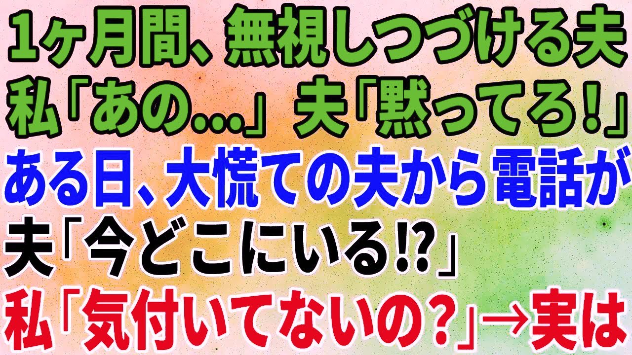【スカッとする話】1ヶ月間、無視しつづける夫に私「あの…」夫「黙ってろ!」ある日、大慌ての夫から電話「今どこにいる⁉」私「気付いてないの?」→実は【修羅場】