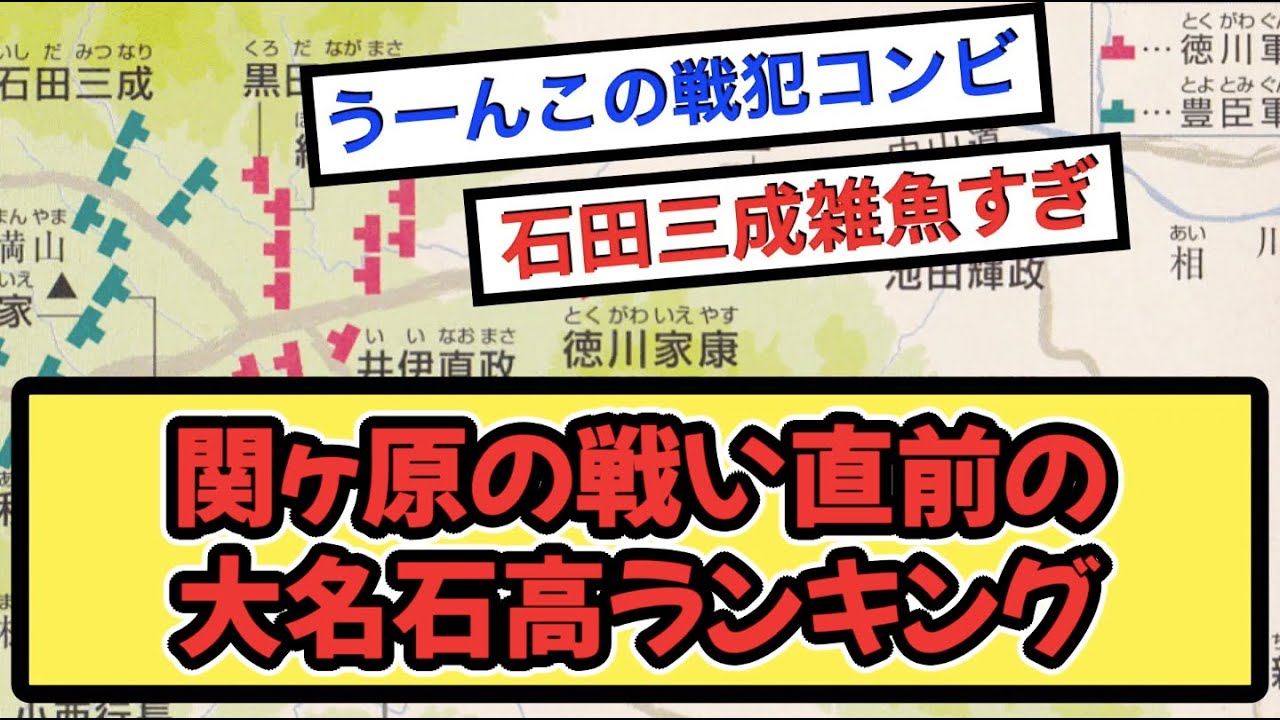 関ヶ原の戦い直前の大名石高ランキングwww【戦国ch】【なんj】【5ch】【2ch】まとめスレ