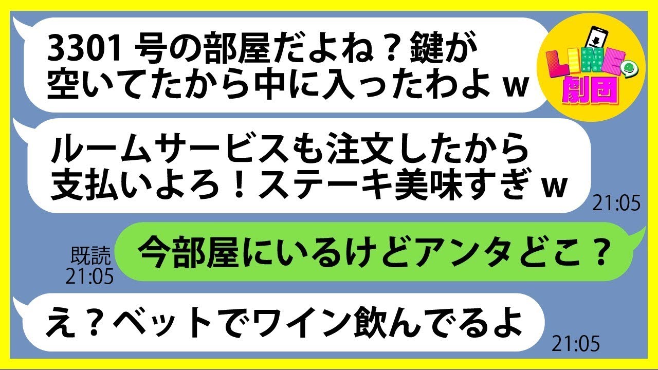 0:00 【LINE】海外旅行中に滞在している高級ホテルに勝手に宿泊を企むママ友「部屋で豪遊中よw」→奢られる前提でルームサービスを注文するDQN女にある事実を伝えた結果…ww【スカッとする話】