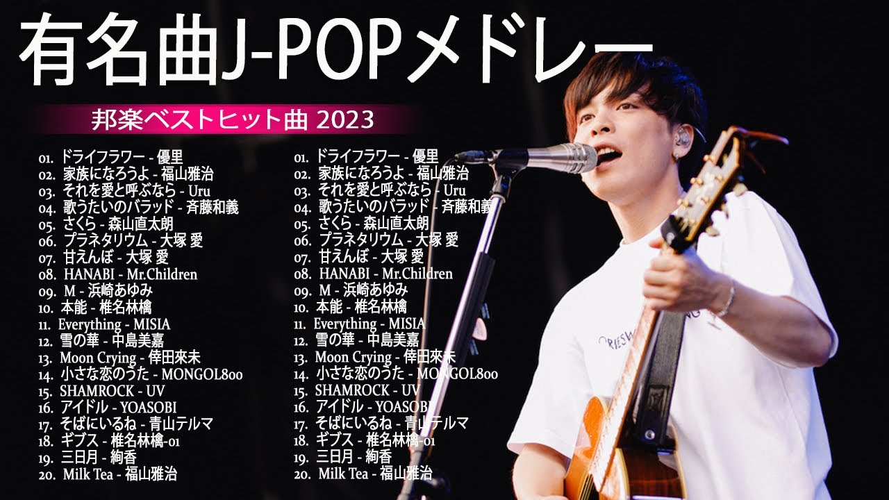 【広告なし】有名曲Jpop メドレー 2023 ♫ J-POP 最新曲ランキング 邦楽 2023 ♫ 最も人気のある若者の音楽 ♫ Uru、YOASOBI、優里、LiSA、 あいみょん、米津玄師