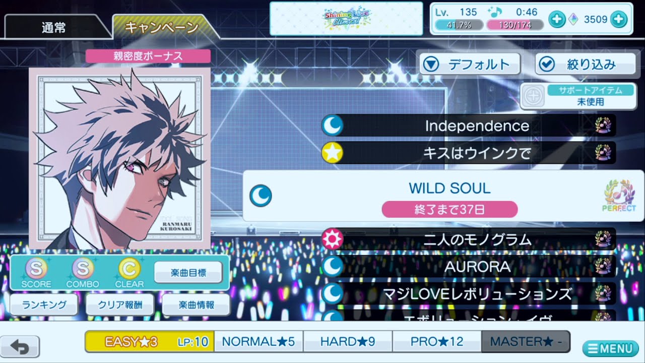 「WILD SOUL」 楽曲レベル:3 ノーツ数:129