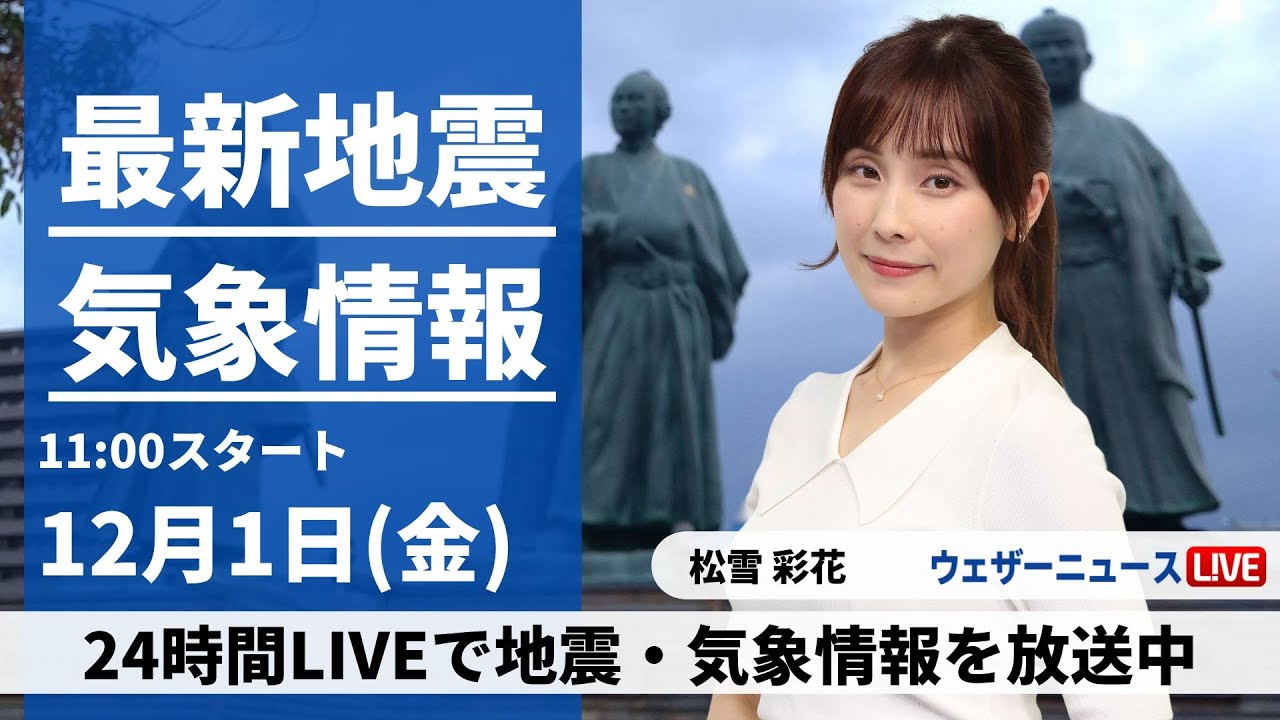 【LIVE】最新気象・地震情報 2023年12月1日(金)/全国的に寒い一日 日本海側で雪や雨〈ウェザーニュースLiVEコーヒータイム〉