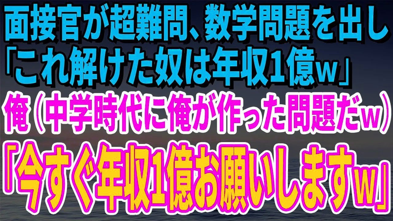 面接官が超難問、数学問題を出し「これ解けた奴は年収1億w」俺(中学時代に俺が作った問題だw)「今すぐ年収1億お願いしますw」