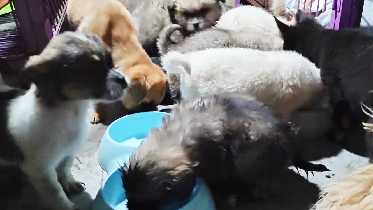 【狗狗日常】和大宝做了3大盆食物,流浪狗争先恐后挤作一团,最后把食盘都舔干净了【理发师小乐和流浪狗】