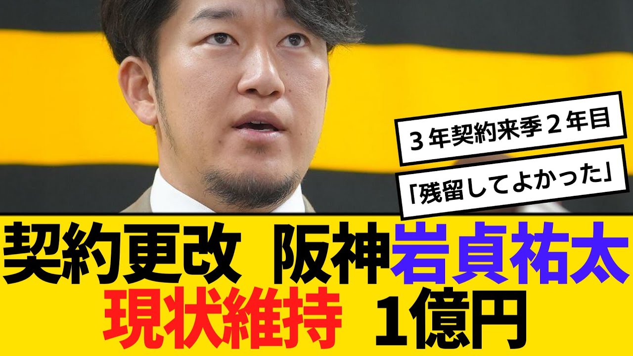 契約更改 阪神・岩貞祐太、現状維持 1億円 【2ch】【5ch】【反応】