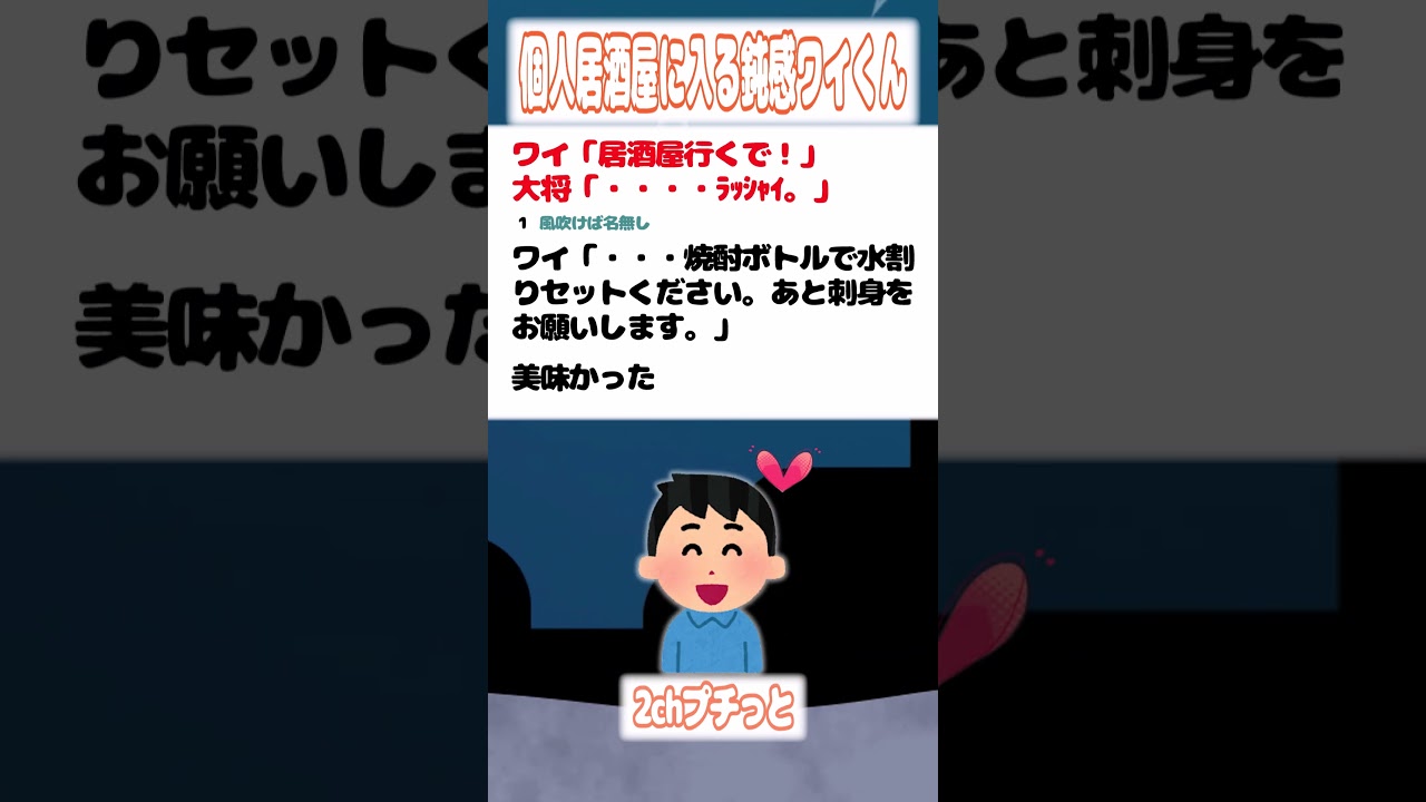 【2ch迷言集】ワイ「居酒屋行くで!」大将「・・・・ラッシャイ。」【2ch面白いスレ】#shorts #2ch迷言集 #2ch #2ch面白いスレ