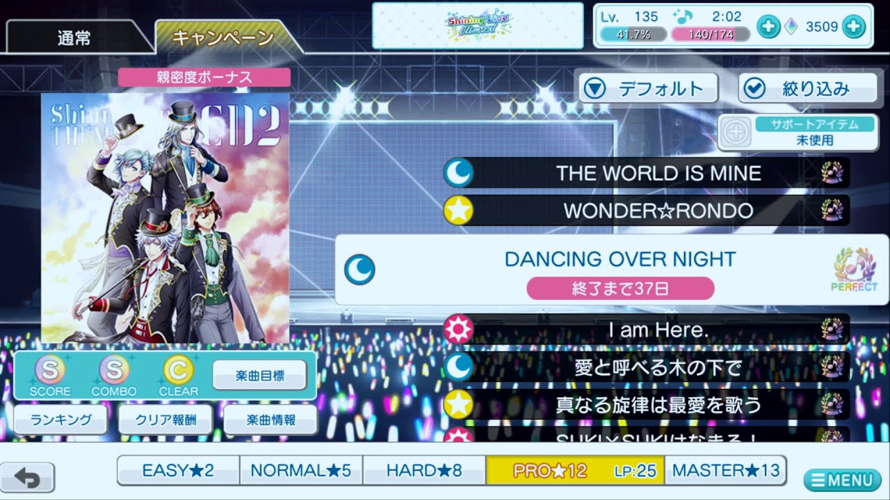 「DANCING OVER NIGHT」 楽曲レベル:12 ノーツ数:490