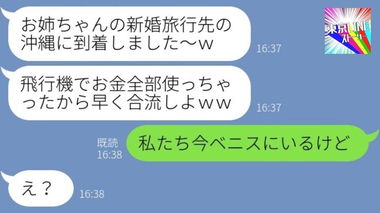 【LINE】姉夫婦の新婚旅行先に奢られる前提で待ち伏せする妹「旅費はそっち負担でw」→人の話を聞かないアフォ女にサプライズ報告をした結果…w【総集編】スカッとするライン動画配信中です!