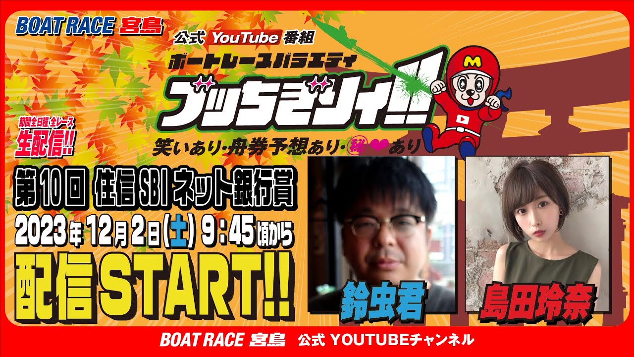 【ボートレース宮島 公式YouTube番組】 ボートレースバラエティ “ブッちぎりィ!!”【鈴虫君&島田玲奈】
