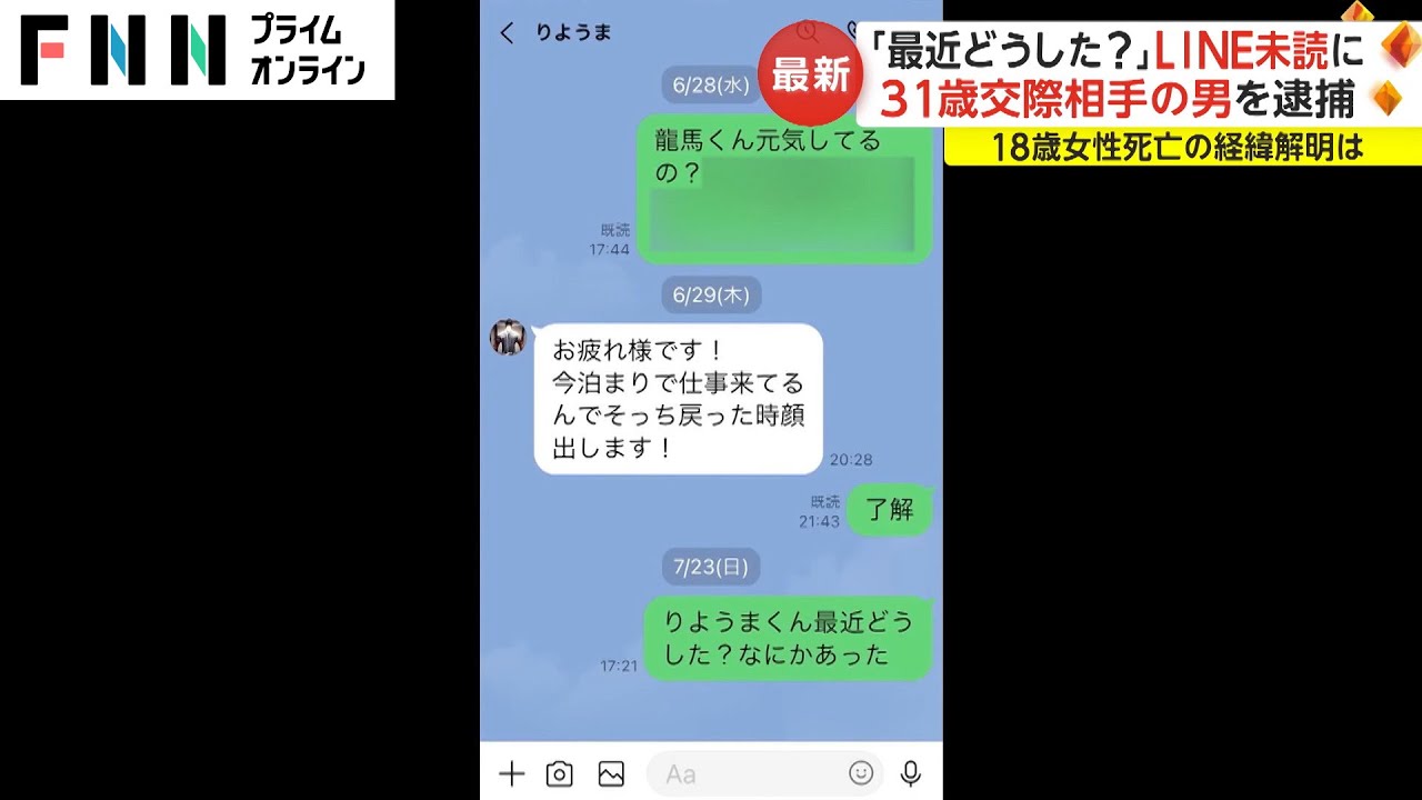 「最近どうした?」LINE未読に 31歳交際相手の男を逮捕 18歳女性死亡の経緯解明は