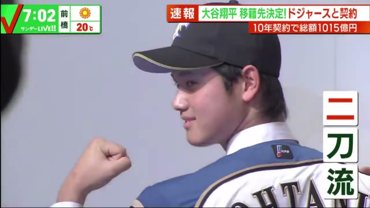 12月10日【MLB】速報大谷翔平移籍先決定!ドジャースと契約10年契約で総額1015億円