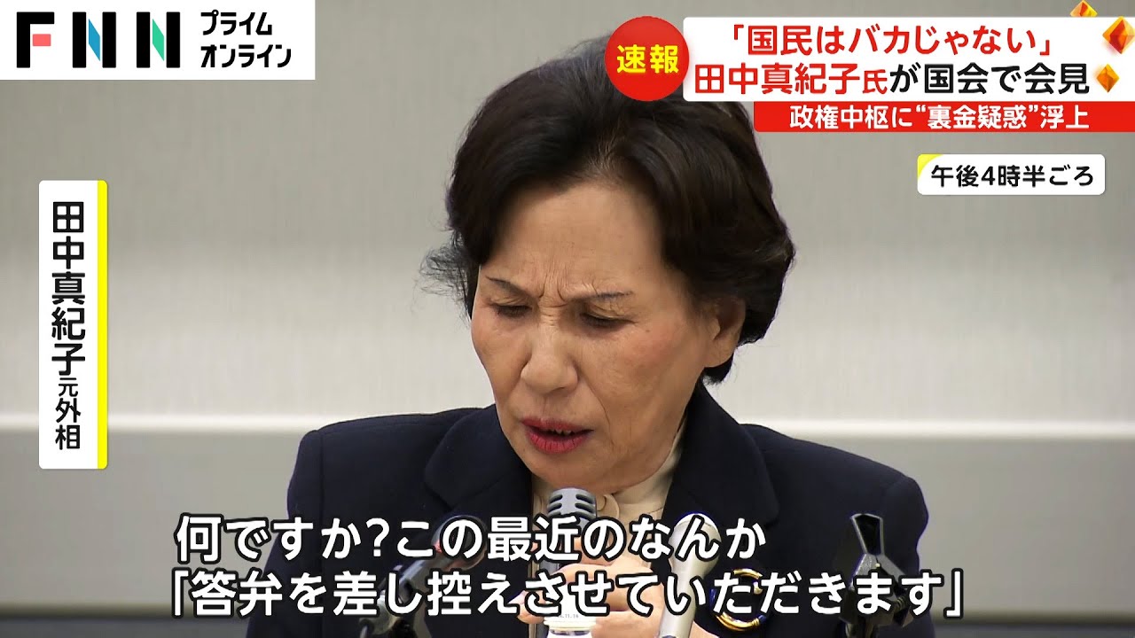 「国民はバカじゃない」 田中真紀子氏が国会で会見 自民党に裏金疑惑の激震が走る中、8日午後4時半ごろ、国会内で会見を行ったのは田中真紀子元外相です。 “賞味期限切れ”の人が首相になっていると、“真紀子節”で今の政治家を厳しく批判しました。 FNNプライムオンライン https://www.fnn.jp/ FNNFNNプライムオンラインfujitelevisionnewsnogizakanogizaka46Nogizaka46 Graduated Membersニュースフジテレビフジテレビジョン乃木坂乃木坂46乃木坂46元メンバー和田まあや Write A Commentコメントを投稿するにはログインしてください。