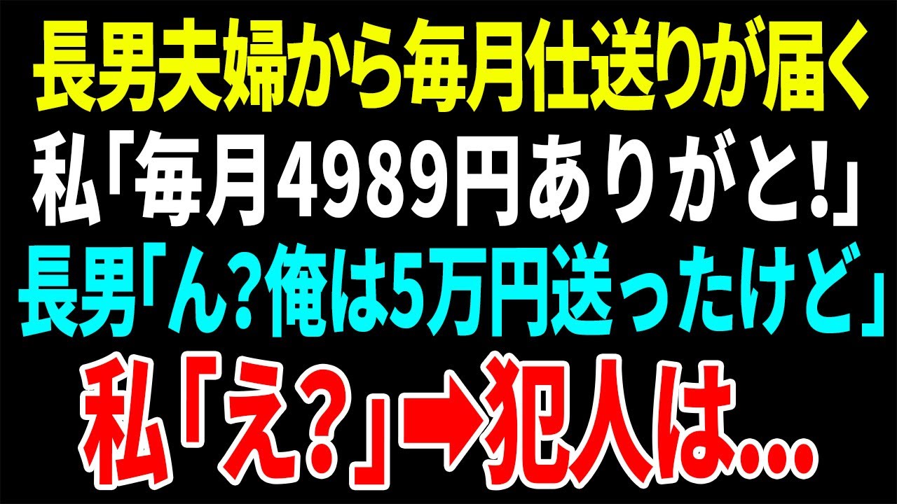 【スカッと】長男夫婦から毎月仕送りが届く。私「毎月4989円ありがと!」長男「ん?俺は5万送ったけど」私「え?」➡︎犯人は…【総集編】