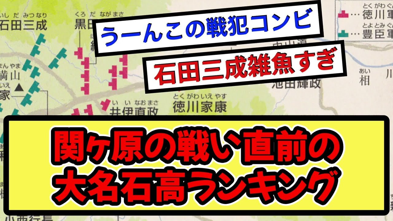 関ヶ原の戦い直前の大名石高ランキングwww【戦国ch】【なんj】【5ch】【2ch】まとめスレ