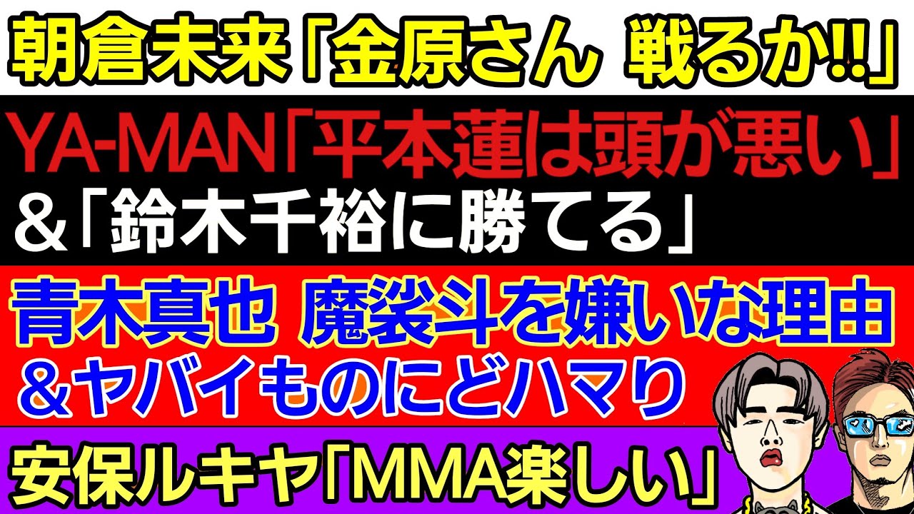 〇朝倉未来「金原正徳 戦るか!」〇YA-MAN「平本蓮は頭が悪い」「鈴木千裕に勝てる」〇安保ルキヤ「MMA楽しい」〇青木真也「魔裟斗を嫌いな理由」&ヤバすぎるものにどハマりしてしまう…