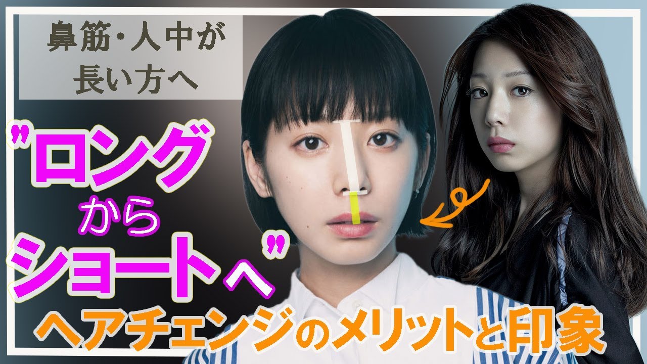 【40代~50代髪型】鼻筋(中顔面)や人中が長い方の似合わせ。ロングヘア―とショートヘアの華やかさ、メリット、どちらが向いているのか?お顔の何を主張すべきか?夏帆さん、吉岡里帆さんで分析しました。