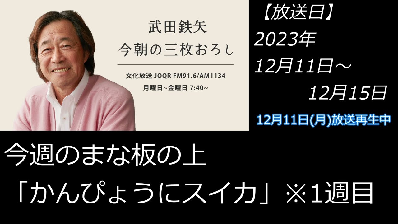 2023年12月11日~2023年12月15日武田鉄矢今朝の三枚おろし「かんぴょうにスイカ」※1週目