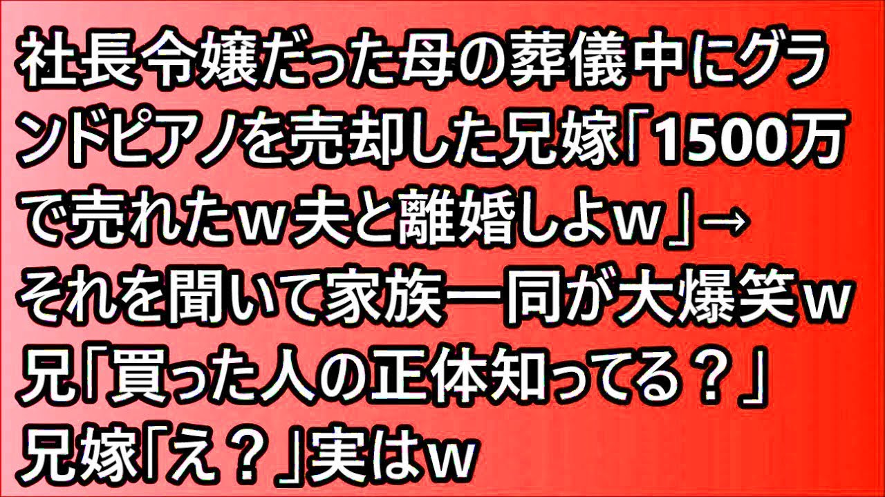 【スカッと】社長令嬢だった母の葬儀中にグランドピアノを売却した兄嫁「1500万で売れたw夫と離婚しよw」→それを聞いて家族一同が大爆笑w兄「買った人の正体知ってる?」兄嫁「え?」実はw【修羅場】