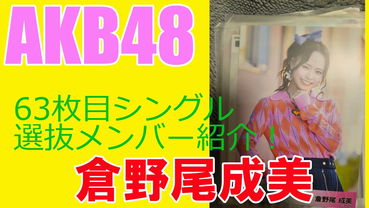 【倉野尾成美】AKB48・63枚目シングル選抜メンバー紹介! ■AKB48 63rdシングル選抜メンバー 秋山由奈・大盛真歩・小栗有以・柏木由紀・倉野尾成美・佐藤綺星・下尾みう・田口愛佳・千葉恵里・長友彩海・平田侑希・水島美結・向井地美音・村山彩希・八木愛月・山内瑞葵 #AKB #AKB48 #倉野尾成美 AKBakb48idolSNSyoutubeyoutuberアイドルアイドルヲタクお話会ユーチューバー倉野尾成美地下アイドル握手会柏木由紀 Write A Commentコメントを投稿するにはログインしてください。