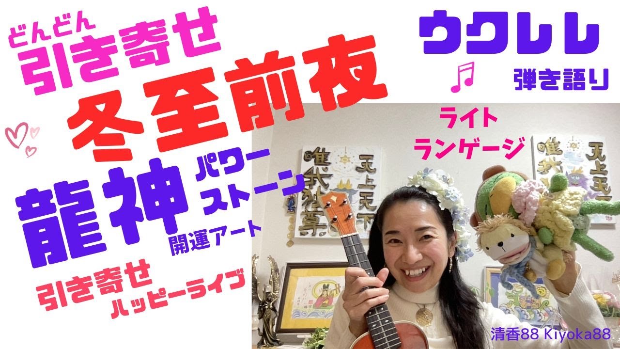 開運 あなたを祝福 龍神アート ハワイで【引き寄せ】いただいたウクレレで弾き語りも。 スターシード ボイスセラピスト 絵描き 清香88(マヤ暦 青い猿x2)&カッパのケメ子
