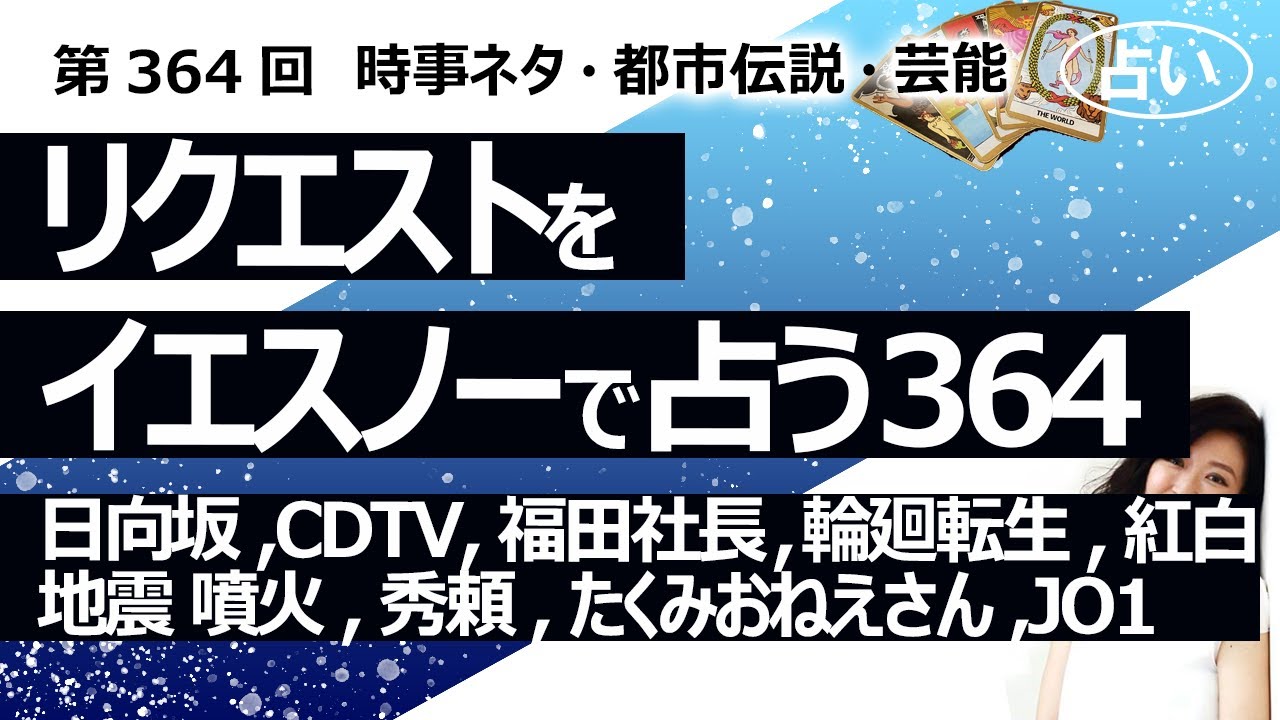 【364回目】イエスノーでリクエストを占うコーナー…日向坂 齊藤京子、CDTV、福田社長、輪廻転生、紅白、地震 噴火 気候、秀頼、天草四郎、たくみおねえさん、JO1【占い】(2023/12/20撮影)