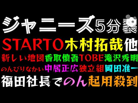 【ジャニーズ 5分裂】『STARTO 木村拓哉』『新しい地図 香取慎吾』『TOBE 滝沢秀明』『のんびりなかい 中居正広』『独立組 岡田准一』福田社長でのん(能年玲奈)起用殺到