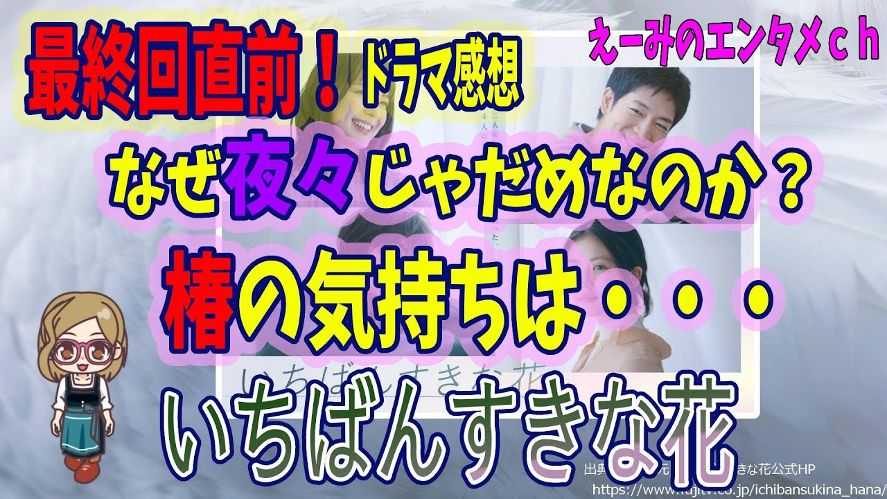 【いちばんすきな花】ドラマ 感想・考察 最終回直前 なぜ夜々じゃダメなのか?椿の気持ちを考える 【フジテレビ・木10】主演:多部未華子・松下洸平・今田美桜・神尾楓珠