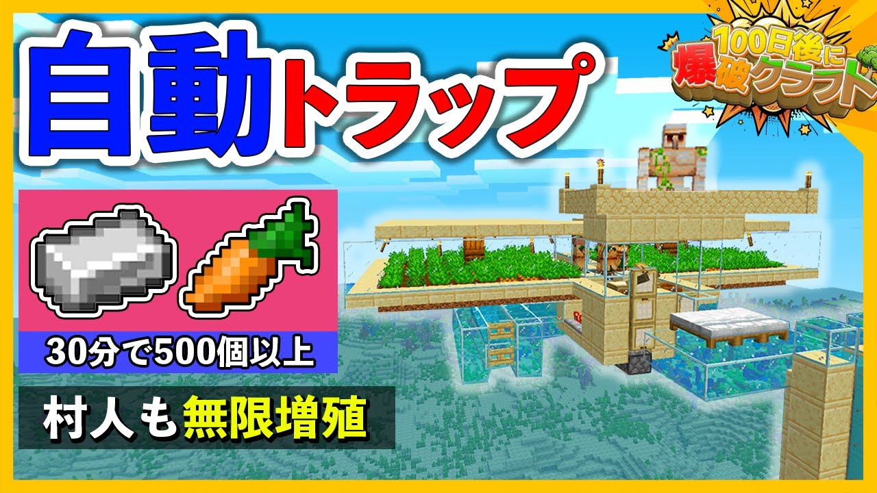 【チートw】鉄とニンジンと村人を無限増殖させる装置を作ってみたw『6日目』【100爆クラフト】