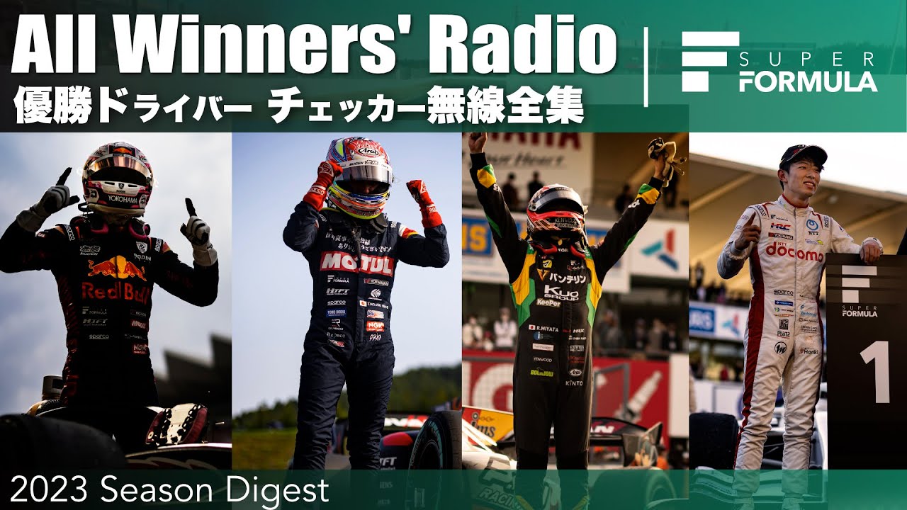 全優勝ドライバー チェッカー無線 リアム・ローソン 野尻 智紀 宮田 莉朋 太田 格之進 | 2023 SUPER FORMULA