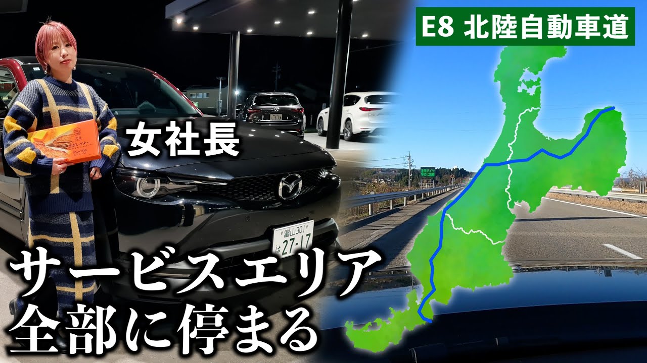 女社長がマツダMX-30に乗って北陸自動車道のSA・PA全部行ったら過酷ロケすぎたw