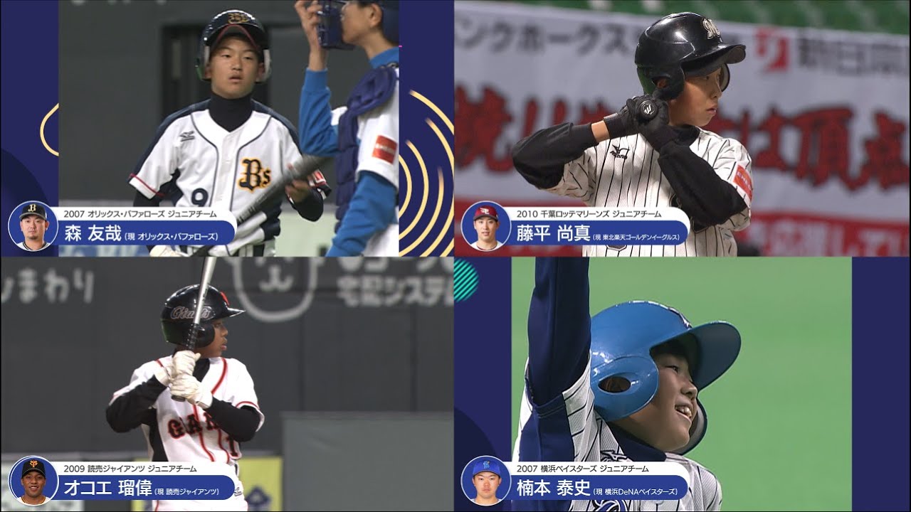 NPB12球団ジュニアトーナメントに出場し、その後プロ入りを果たした選手たちの当時のプレーをご紹介します!