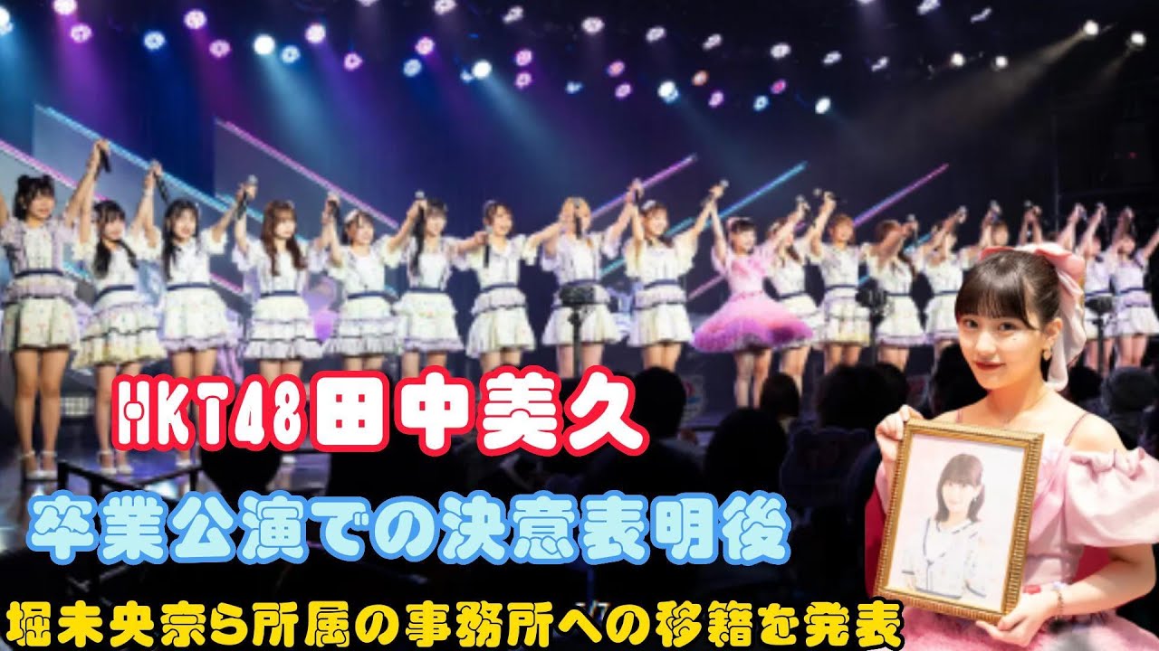 このビデオは、HKT48の田中美久が卒業公演で自らの心境を語り、将来の展望を明らかにする貴重な瞬間を捉えたものです。田中美久は、「いい背中を見せ続けたい」という強い決意を語り、ファンや関係者に感謝の気持ちを伝えました。さらに、ビデオでは彼女が堀未央奈らが所属する新しい事務所への移籍を発表する様子も収められています。田中美久のこれからの活動についての期待と、彼女の卒業公演での感動的な瞬間が詰まった貴重な映像です。