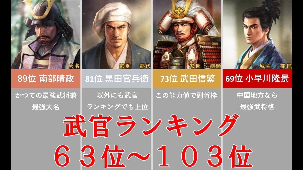 【戦国立志伝】63-103位 武官ランキング【信長の野望】