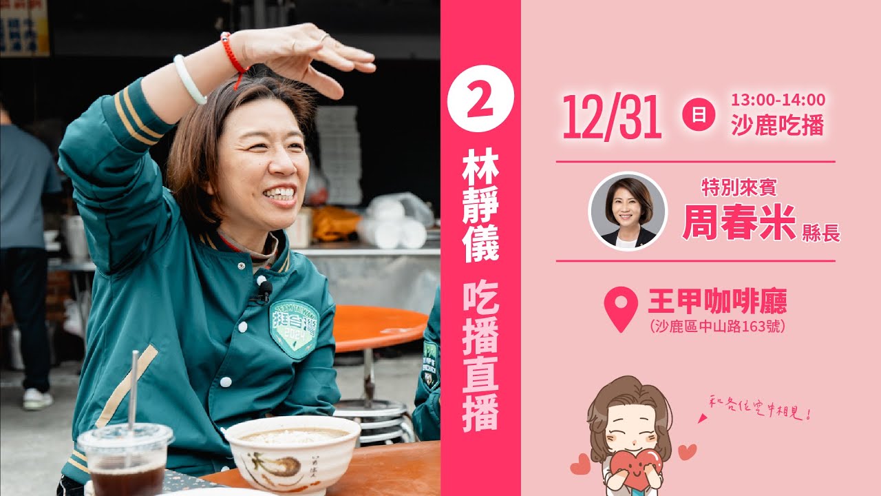 【 一起吃播迎新年】林靜儀委員ft.周春米縣長 今天是2023年的最後一天,靜儀委員將在少鹿好吃的王甲咖啡廰進行吃播,本次的吃播也邀請到屏東縣的周春米縣長一同參與同樂,也給靜儀委員鼓勵,要幫助靜儀委員守住闗鍵這一席,讓台中第二選區的改變可以持續。 actress台中台中第二選區大肚女優山谷花純林靜儀林靜儀醫師林靜怡林靜怡醫師沙鹿烏日霧峰龍井 Write A Commentコメントを投稿するにはログインしてください。