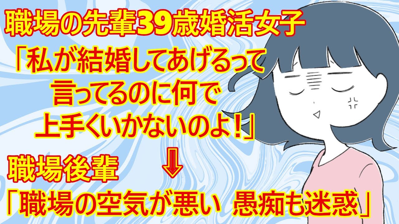 【修羅場 婚活】職場の先輩婚活女子(39)「年収500万円でパートやるなら家事分担。一戸建てかタワマン。これで私が結婚してあげるのに何で上手くいかないのよ」←職場後輩「愚痴を聞きたくない、迷惑すぎる」