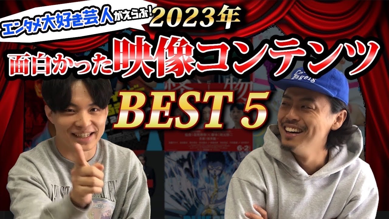 えきキが選ぶ2023年映像コンテンツ ベスト5 よいしょやありがとうございます今年も この季節がやってまりました今年もやって きましたねもう3年目でございますすごい すね2021年から毎年やってるもうやっ てますけどもほんまにもうこのランキング 考えてる時が1番楽しい1年の総まとめ エンタメ大好きな2人がはいやるわけです けども今年はねさのおうではいありがとう ございよろしくお願いしますすいません ほんまにもうちょっとま一戦知りそれた目 ではあるんですけど今年もやってくれると いうことではい元プードルの山下お願いし ます僕はちょっとね芸人は引退したんです けども引き続きまこの1年色々見てきまし たんでいやそうですよはい引退してからの 方がメディアとか出てるどうそんなこと ないまどういうことやね芸人時に1回も できへんかったラジオパーソナリティが なぜかねなぜかこのフリーザなんてから やってまうてなんやねんひらがないやもう わからんねもそのなんかあれいるんじゃ ないですかそのなんかヒューマン中村 みたいないや思ったけどそんななんかどう しますかって言われたけどいや別にまあひ えきひらがな英吉ではいでこんだけ ミューパラとかもやってる意味わからへ ABCほんでほんでミューパラチロルの 代わりにやってん俺スケジュール開いてん のどういう意味やねんマジでいやいや ほんまやないやめっちゃ音楽も好きやんが や音楽好きですよ僕1人で好きですよたら バンドとかやったら下手し今で言ったら めっちゃ聞いてるんかなと言って昔も一緒 にライブ行ったしさそうねな行きましたし 何回か言ってもんなリディクレとか見てた し行きましたし喋れるね全然いや喋れます よもう全部詳しいよ僕するほんまや漫画と かで言ったらマジでも匹敵する人いない ぐらい詳しいやすごいもんだって今回 初めて家来たけど漫画の量もすごいしな いやこんなもうマジごく一部ですけどね はいいやだからそんな2人はねはいえ今年 もね2023年はい1番面白かった5作品 をもう何でもオッケーですねもうだから 映像映ドラ映画ドラマYouTubeとか でもオッケーしサブスク地上派なんでも ありなんかそういうね1番組でもいいと いうかはいはいはいはい特番でもいいと いうで基本的には今年発表のコンテンツね 2023年のはい23年発表はいはい コンテンツはいということでどっちの5位 から行きましょうかじゃじゃお願いします わかりましたいいですかはいえまず私記の