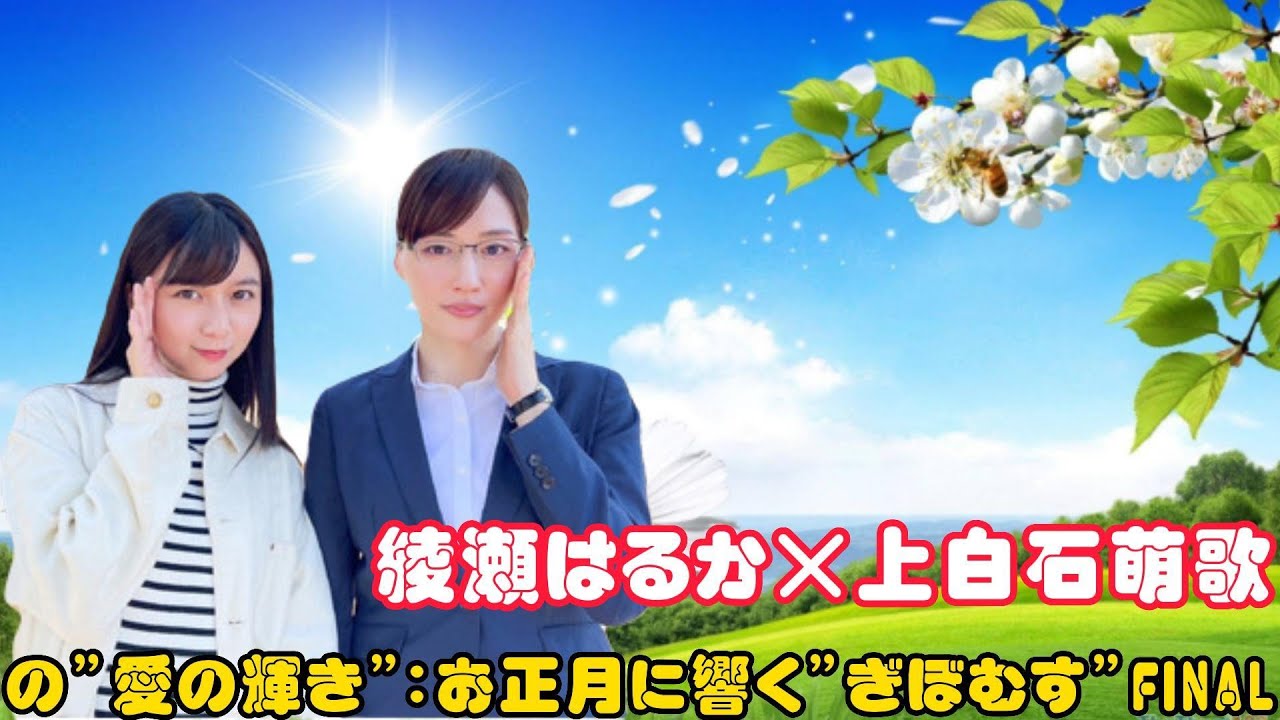 新春の喜びと愛を称える特別な瞬間をお楽しみください。日本を代表する才能、綾瀬はるかさんと上白石萌歌さんが、お正月に贈る最後の”ぎぼむす”FINALをお届けします。彼女たちが築き上げてきた絆と情熱が詰まったこの特別な瞬間をお見逃しなく。