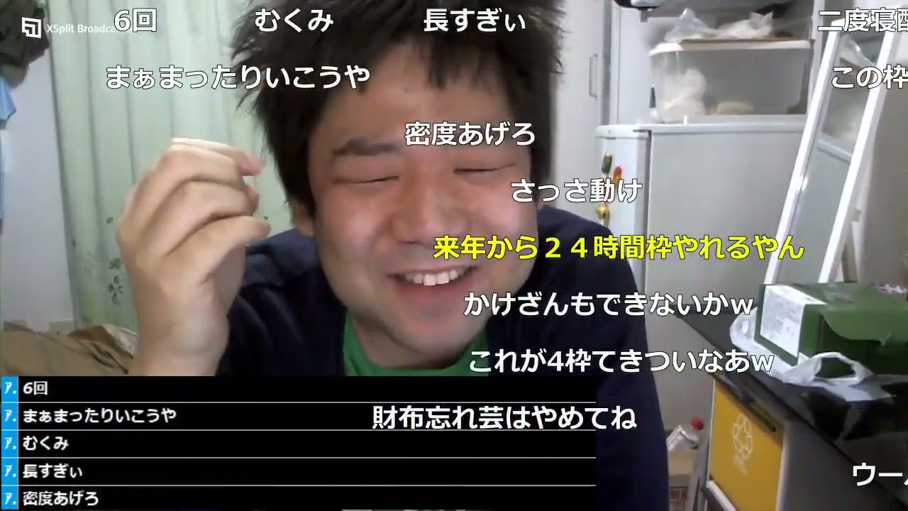 よ よしテレビつまんねえもんそれは自分の 視野が狭いだけだろそう何でもかんでも つまらんつまらんつまらんって言って消費 した結果ほとんど娯楽の視野が狭くなって いく自分が文句言うんだったらどんどん 娯楽テレビでも自分のね視野がね狭くなら ずに楽しもうという姿勢があれば楽しく なってくるよ何でも君たちは勝手に視野 狭くして自分の娯楽減らしとるだけよ 車に構え てよし着替えるんだらいや寒くてもう寒く て俺今日風邪引かないよもう急にしてる から今日多分外もいっぱい出かけるだろう からそ24時間でもう正直きついんだ よ6時間枠4つだぞもううつ4つだぞもう こんなんもうもうやだよ体力的にもう明日 の朝の初日の出の時なんてもう声ガラガラ よ俺毎回そうなんだから雨降ってる しそう絶対きつい よもう分かるもんやる前 からそうもう4回目から3回目ぐらいに なればもう分かりますよ辛いなって いうでもまあ24時間配信っていうのはね まいつもそうなんだけど初日の出を見た時 に報われるんだよ初日の出見たらもう配信 の終了も目の前だしみんなもあ1年終わっ たなっていうそう1番1番辛いのはね カウントダウンあのカウントタンから 初日の出まれのあ6時間もうあそこがもう 死ぬほどきついマジであそこもう1つの パーティーが終わってあのもうなんて言う の初日でっていうちゃもうカウントダウ ンっていうもうなんて言うの1番 パーティーが終わってもうみんなが熱し 詰まって初いのでの準備するから人もい なくなってどれも初日の出の準備しなく ちゃいけなくてて場所移動してる時もう それがもう 疲れるもうそこの6時間がもうきついうん 盛り上がりが終わるとカウントダウンの もう一気にさーってなって から一緒に見よう ぜ いっつもそれだもんそうだからその後 カウントダウン見たのがやることあるん だったらまだいいんだよねそうこれこれ 24時間配信するのが目的だからさやる ことないからさ1番しんどいんだよ ね野外学習みたいに何かを考えてるわけで もない しまあ24時最後の日ぐらい一緒に過ごし ましょうっていう枠だ からよいしょと 給料いくら13万ちょっとかなで1万